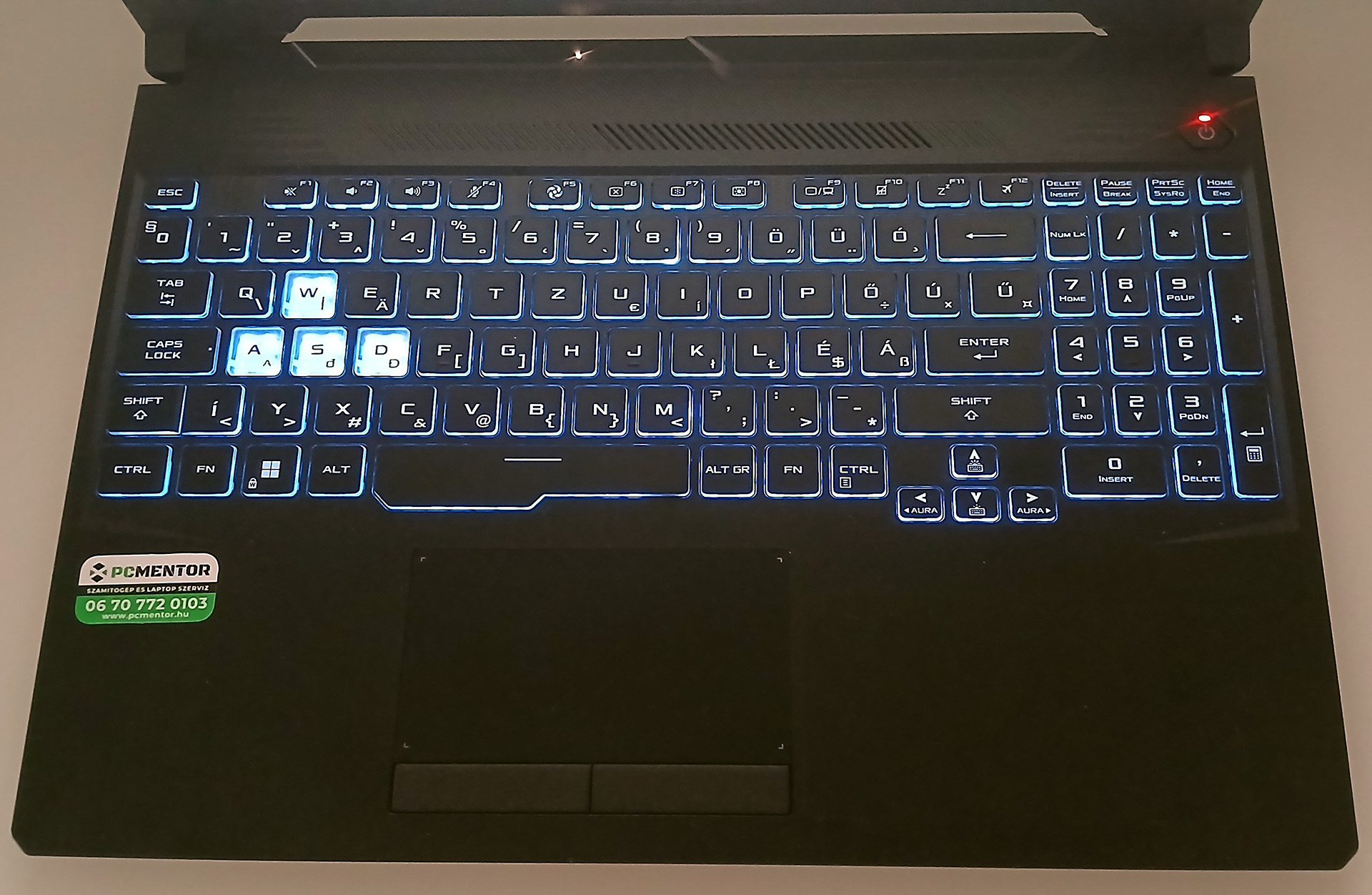 Így néz ki a magyar kiosztású billentyűzet sötétben, bekapcsolt háttérvilágítással(sötétben sokkal jobban olvasható):