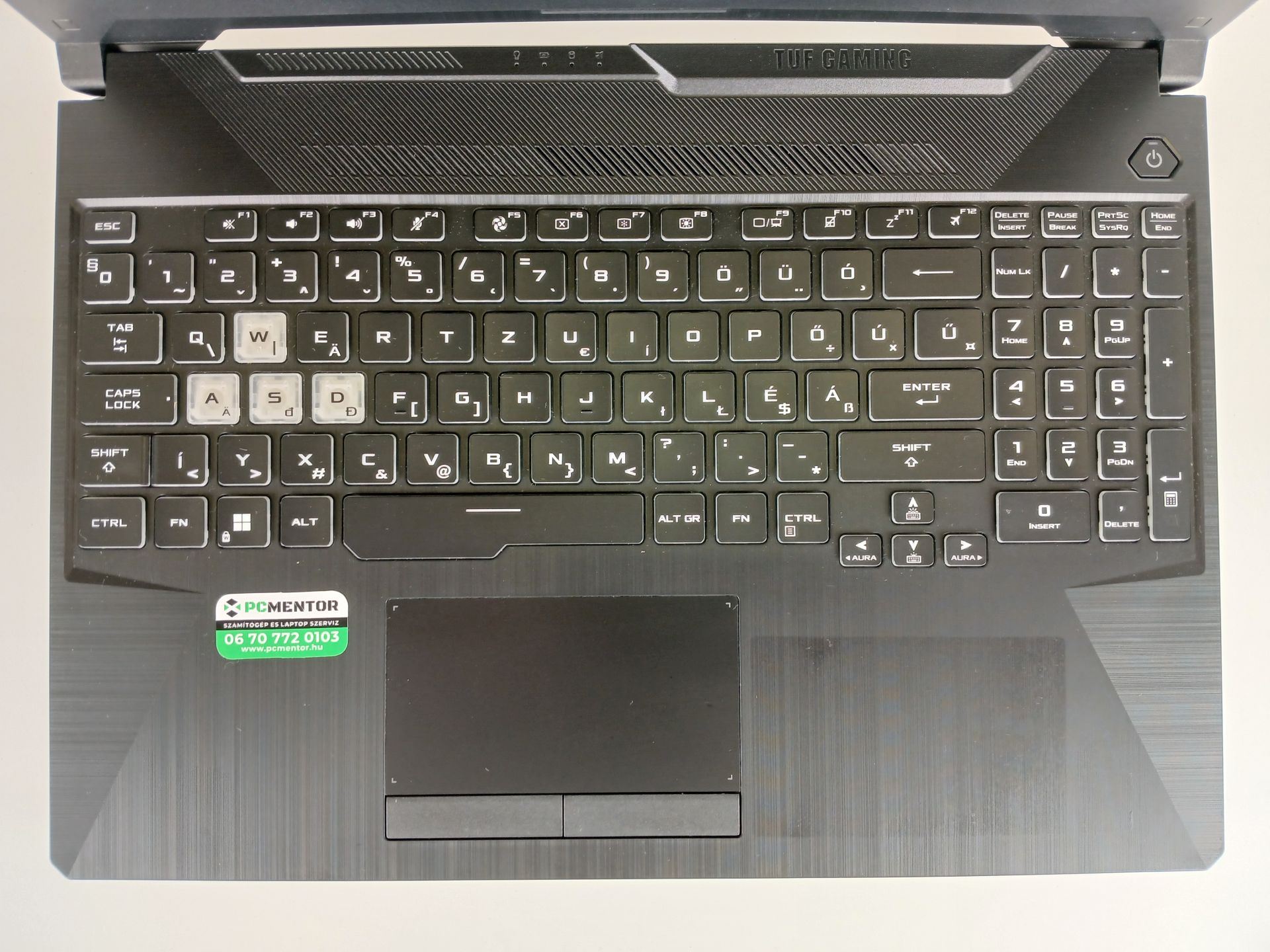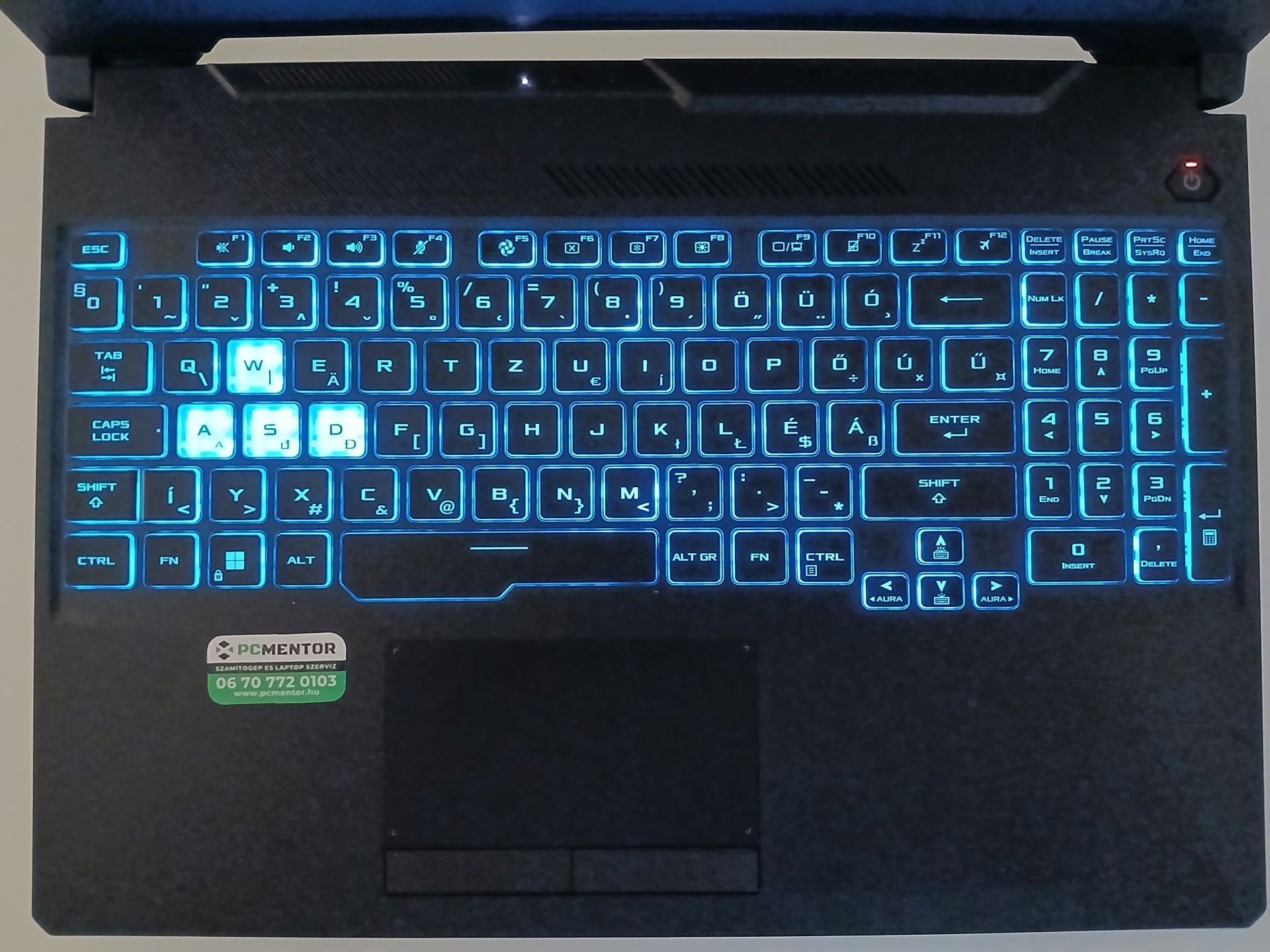 Így néz ki a magyar kiosztású billentyűzet sötétben, bekapcsolt háttérvilágítással(sötétben sokkal jobban olvasható):