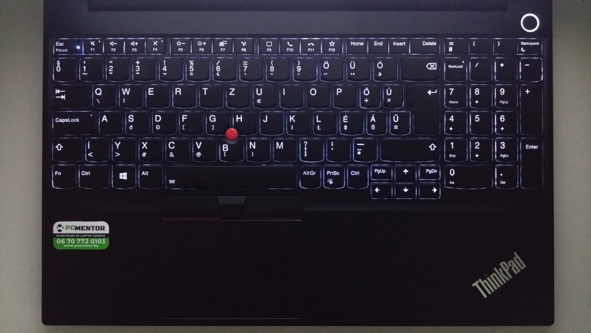 Így néz ki a magyar kiosztású billentyűzet sötétben, bekapcsolt háttérvilágítással(sötétben sokkal jobban olvasható):